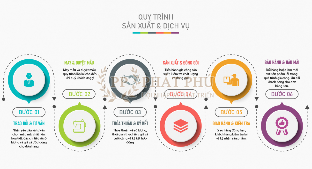 Quy trình làm việc rõ ràng, khoa học, từ khâu ký kết đến nhận đơn hàng một cách chặt chẽ. Cam kết hoàn thành đơn hàng đủ và đúng thời hạn